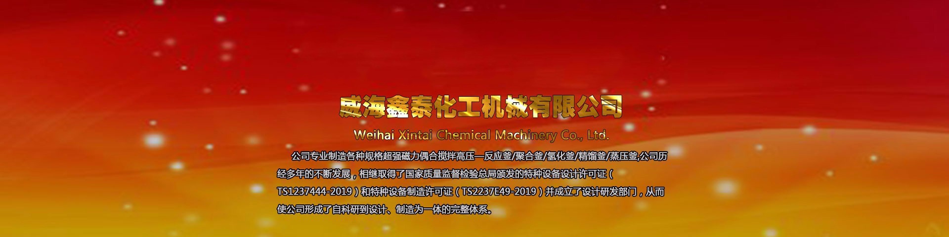 威海鑫泰化工機械有限公司位于山東威海,本公司專業(yè)制造銷售各種規(guī)格高壓反應釜、磁力反應釜、不銹鋼高壓釜、不銹鋼反應釜、強磁力偶合攪拌反應釜及與其配套的壓力罐、冷凝器、塔器等,其結(jié)構(gòu)形式、高中低壓、加熱方式、攪拌形式、轉(zhuǎn)速變化均可按標準或按用戶工藝要求進行選配定制,廠家直銷,產(chǎn)品價格低,型號全。